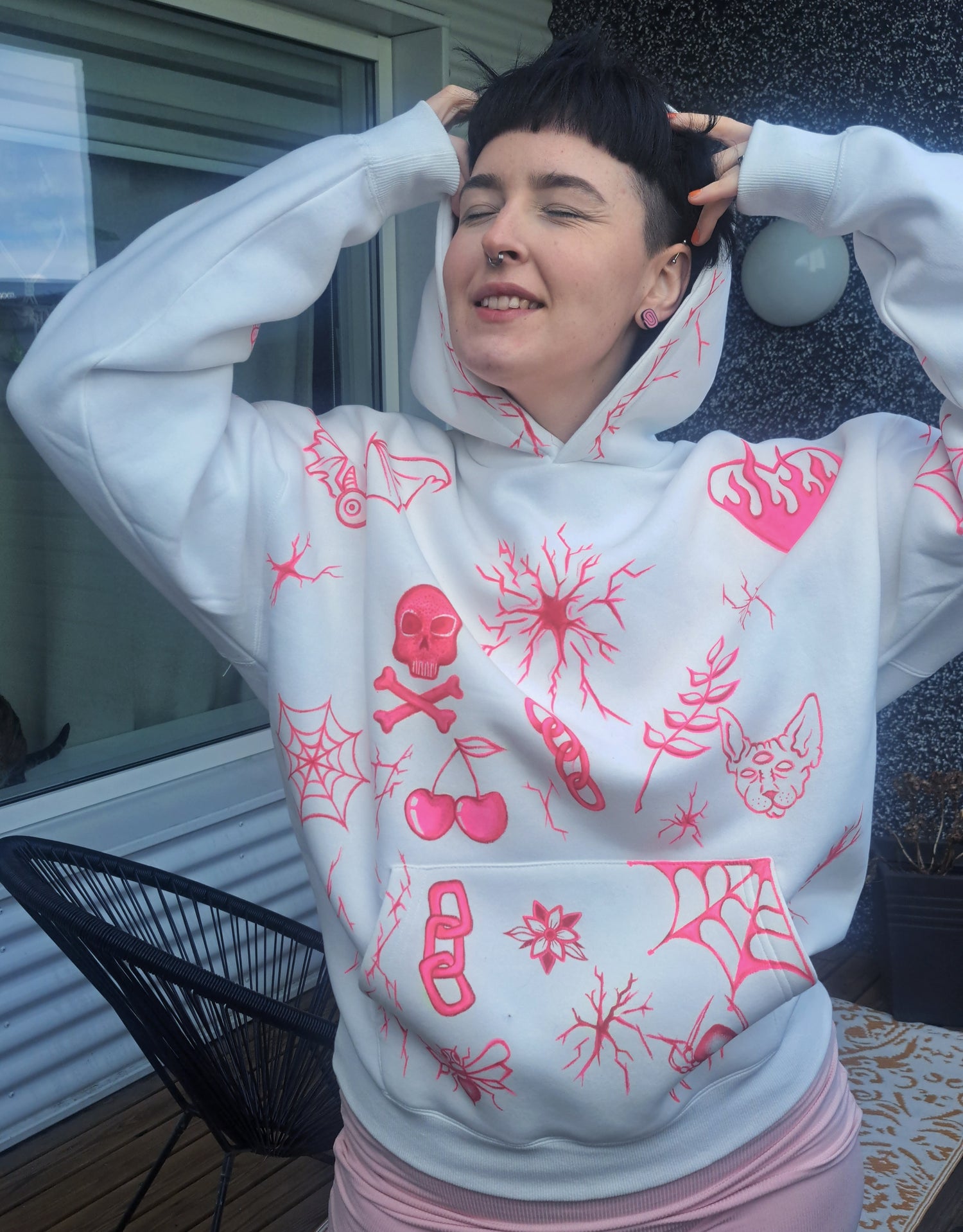 Fötin eru annað hvort handmálaðar flíkur eða prentaðar með mínum teikningum – allt með einstökum stíl.