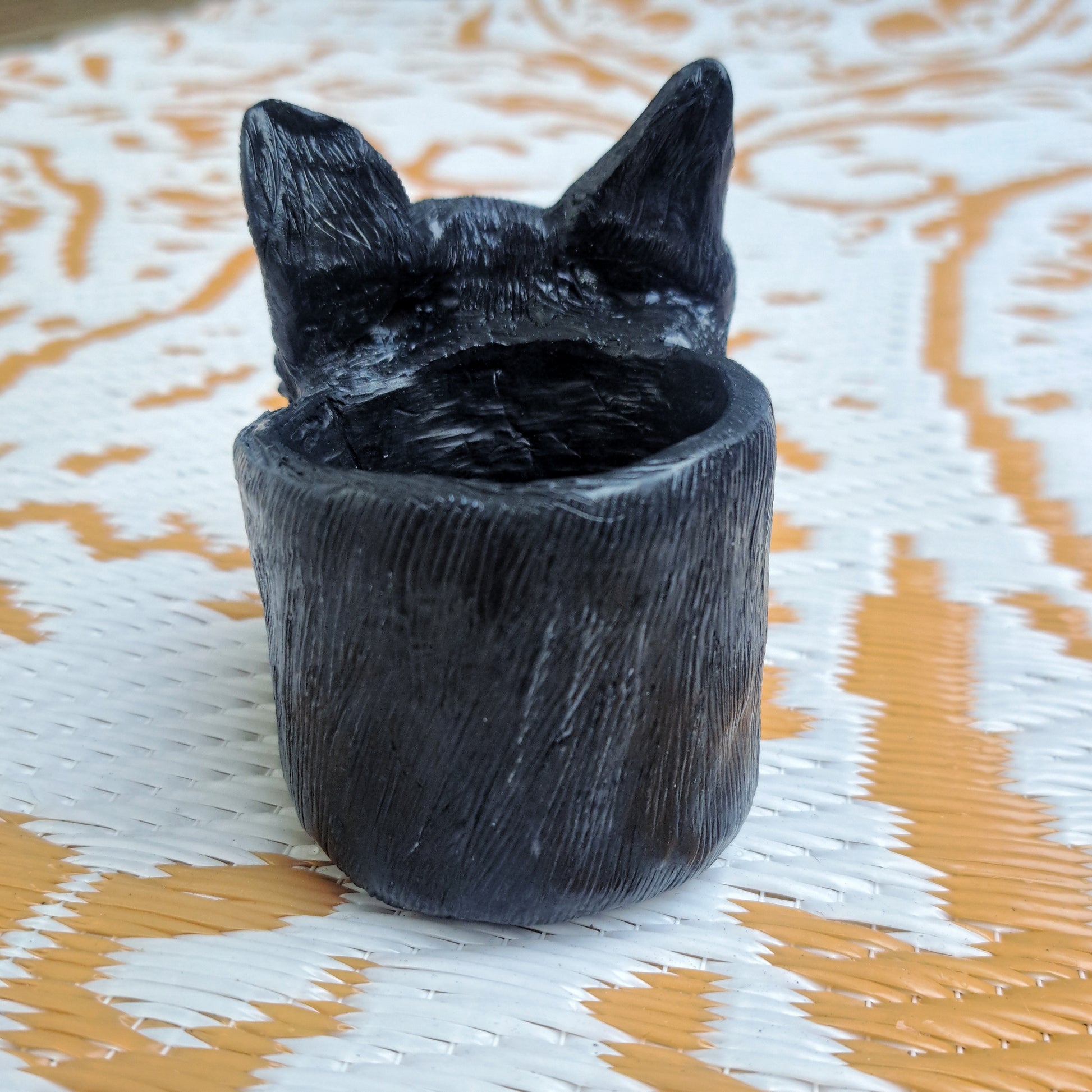 Handmade black cat small flowerpot