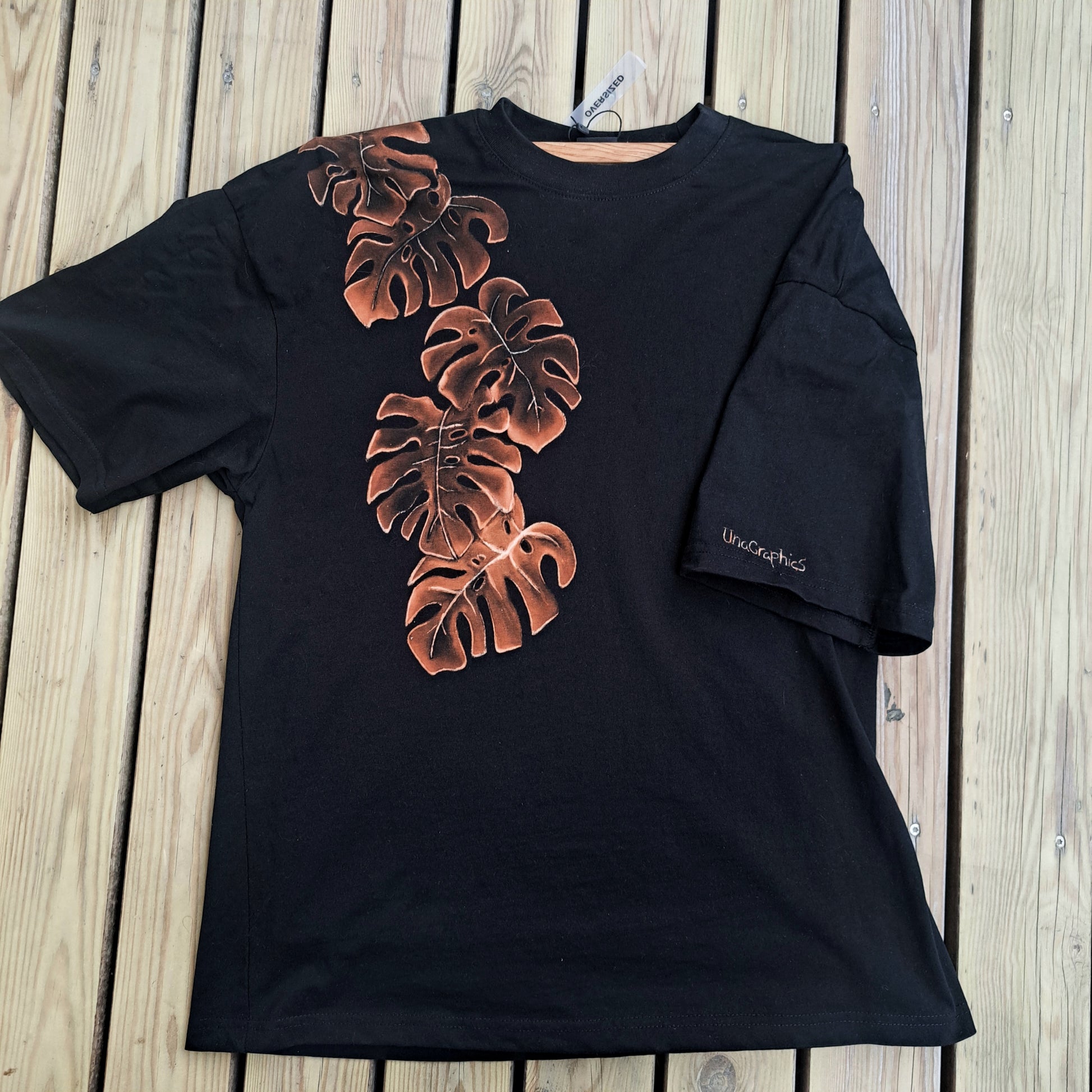 Bolurinn er í stærđ M og er handmálađur eftir listakonuna Unu Birnu einungis međ klór.