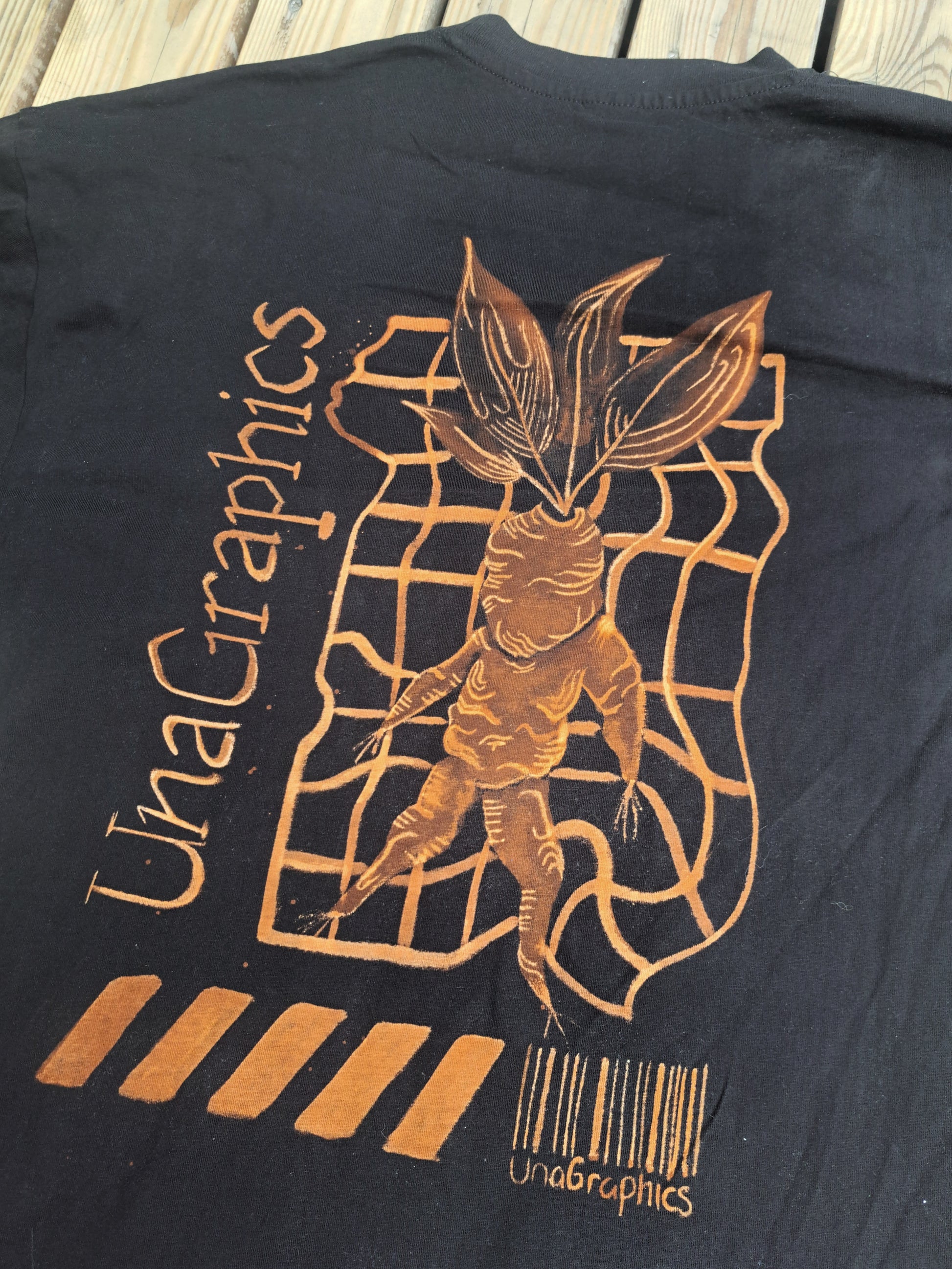 Bolurinn er í stærđ L og er handmálađur eftir listakonuna Unu Birnu einungis međ klór.
